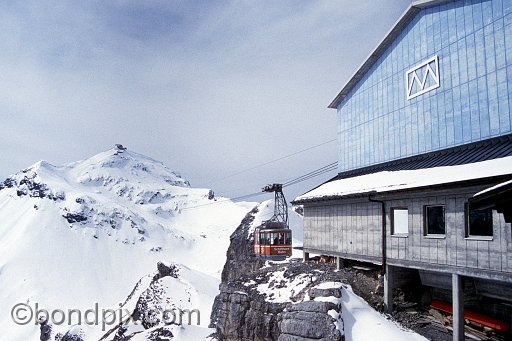 Cable car ascends towards Piz Gloria from Birg station in the Bernese Oberland Alps region of Switzerland. Location for the James Bond 007 film On Her Majesty's Secret Service.