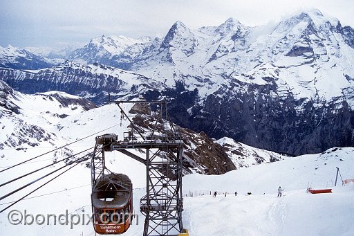 Cable car ascending towards Piz Gloria from Birg station in the Bernese Oberland Alps region of Switzerland. Location for the James Bond 007 film On Her Majesty's Secret Service.