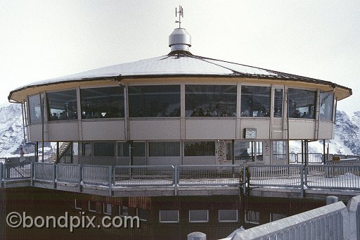 Piz Gloria revolving restaurant on top of the Schilthorn mountain in the Bernese Oberland Alps region of Switzerland. Location for the James Bond 007 film On Her Majesty's Secret Service.