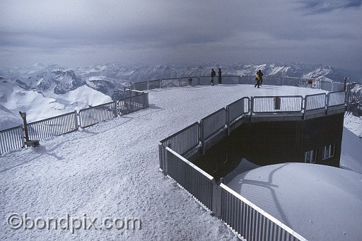 The view from the revolving restaurant at Piz Gloria on top of the Schilthorn mountain in the Bernese Oberland region of Switzerland. Location for the James Bond 007 film On Her Majesty's Secret Service.